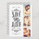 Announce your date in style with this 3-photo save the date card featuring bold typography. The reverse features a striped pattern and an additional photo and text.