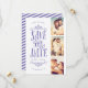 Announce your date in style with this 3-photo save the date card featuring bold typography. The reverse features a striped pattern and an additional photo and text.