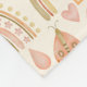 Customisable monogram name baby blanket gift with a pattern of watercolor painted modern boho rainbows in earthy neutral tones.