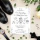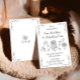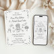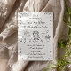 Whimsical and romantic, this hand-drawn wedding invitation features charming black illustrations of wedding day icons, including a tiered cake, delicate flowers, a sweet cupid, graceful dove, and classic wedding rings. Paired with playful handwritten script and floral accents, this artistic black-and-white design sets a lighthearted yet elegant tone. Perfect for couples seeking a unique, creative, and unforgettable way to invite loved ones to celebrate their big day.