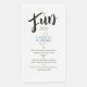 Introducing our chic and whimsical wedding guest towels, with sleek modern script and simple minimalist design, perfect for any wedding. Customise them with the names of the happy couple and sprinkle in some fun facts about them. Whether it's the wedding reception, rehearsal dinner, or engagement party, these towels will add a touch of sophistication and humour to your event. The black, turquoise, and white colour scheme exudes style, while the customisable typography makes each towel unique. Get ready to make your guests smile and leave a lasting impression with these stylish and fun guest towels!