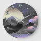 Whimsical Moon and Mountains Abstract Art Large Clock