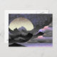 Modern abstract art with dreamy scene of big moon and mountain landscape.