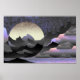Modern abstract art with dreamy scene of big moon and mountain landscape.