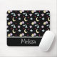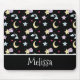 Whimsical Moon, Stars and Clouds Pattern on Black Mouse Pad