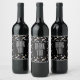 Whimsical Moon, Stars and Clouds Pattern on Black Wine Label