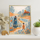 This charming folk-style illustration captures a peaceful moment between a mother and child walking along a winding path through a blooming countryside landscape. Surrounded by delicate flowers, soft rolling hills, and a cozy cottage glowing in the distance, the artwork evokes warmth, love, and the quiet beauty of simple family moments.