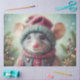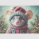 Whimsical Mouse in Festive Christmas Hat Decoupage Tissue Paper