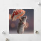 A charming and imaginative close-up of a tiny mouse standing upright on its hind legs, using a vibrant red and white fly agaric mushroom as an umbrella to shield itself from the gentle rain. The image captures a magical, storybook atmosphere, highlighting the cuteness of the animal and the whimsy of the scene.