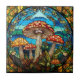 Whimsical Mushroom Stained Glass Ceramic Tile
