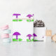 A fun design featuring pretty whimsical mushrooms with plants and greenery around them.