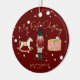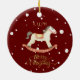 Make their first Christmas extra special with this whimsical red Christmas tree bauble design. Features a Children's Nutcracker scene complete with a rocking horse, drum set and toy soldier on the front with rocking horse and faux Gold foil Merry Christmas on the back. This luxury kids personalized Christmas tree decoration is complete with a gold rustic script custom kids name and Merry Christmas message.