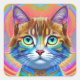 Adorable orange cat with green eyes with mystical background AI generated art stickers.