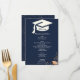 Whimsical navy blue graduation party dinner menu, click the personalised button to add all your details.