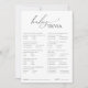 Introducing our whimsical neutral baby shower trivia card, perfect for any season, whether it's fall, winter, spring, or summer! This game card has a boho-chic vibe with modern, elegant calligraphy and a minimalist black-and-white design. It's pretty and unique, with a touch of vintage shabby chic, making it perfect for both boys and girls. Plus, it's editable, so you can add your own classy, whimsical touch to create truly beautiful and delicate personalised stationery for your event. Please feel free to reach out with any questions regarding the product's design; we are happy to help!