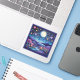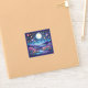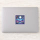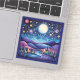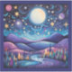 Contour sticker with a beautiful illustration. Whimsical and fanciful vibe. A big glowing moon with stars all around. Hanging over a lovely landscape of trees, mountains and a winding river. Awesome magical mystical vibe.
