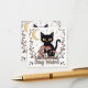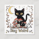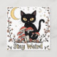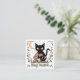 Whimsical noir cat framed by red mushrooms and pal enclosure card