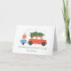 Spread cheer with this whimsical holiday card featuring a retro red car hauling a tree and gifts under a shower of festive stars. Playful and nostalgic, it’s perfect for sending warm wishes and custom messages to family and friends. A fun, vintage-inspired way to celebrate the season.