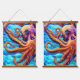 Whimsical Octopus Blue Ocean Wave Cubism Hanging Tapestry