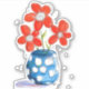 This is an original watercolor painting of whimsical orange flowers in a blue vase.