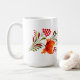 Bring a burst of color to your day with this vibrant mug featuring a whimsical print of orange flowers and berries. Perfect for adding a touch of creativity to your morning coffee or tea, this mug is sure to brighten up your routine and make a unique gift for anyone who loves original art