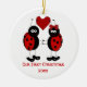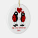 A cute ornament for a newly wed couple. It features a cartoon ladybug couple holding a heart on the front. Customisable text is on the bottom. The other side has a space for your custom photo. Great wedding or Christmas Gift.