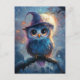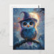 Whimsical Owl in Witch Hat with Full Moon Postcard