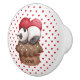 Adorable black and white panda bear is lying on a cupcake with a red heart behind him. Background is white with tiny red hearts. Personalise with your baby girl's name. There are other coordinating knobs in my shop so you can mix and match for fun too!