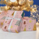 The gentle pink background brings a modern pastel twist to classic holiday wrapping, while the playful tree illustrations offer a cozy, retro-inspired charm. Perfect for design lovers and those who adore a cute, Scandinavian-style Christmas aesthetic.