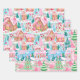 Whimsical Pastel Pink Gingerbread Village, Wrapping Paper Sheet