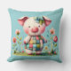 Whimsical Patchwork Pig in Floral Garden Cushion