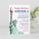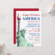 Host a fabulous 4th of July party to celebrate Independence Day in America with this whimsical invitation featuring the Statue of Liberty toasting the occasion with a large glass of red wine. The colour scheme is a patriotic red white and blue. Personalise the simple text template with your party details. You can add or remove lines of text as needed. To make additional changes after entering your text, choose "click to customise further" at the bottom of the design template.