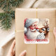 Whimsical Personalized Santa and Rudolph Holiday Square Sticker