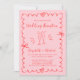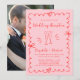 Celebrate your love with this pink wedding reception invitation, a playful yet elegant design featuring hand-drawn red scalloped borders, whimsical heart accents, charming champagne flute illustrations, red script and typography, and your photo on the back, this invitation sets a joyful tone for your wedding reception. Ideal for wedding receptions, post-ceremony celebrations, and casual-chic weddings.