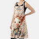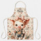 Whimsical Piglet in Pastel Overalls Peach Apron