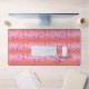 Whimsical girly desk mat done in a pink and orange floral abstract design. Personalise the name at the top of the mat, to suit your needs. Great gift idea for her.