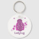 A whimsical ladybug in shades of pink and purple. Flirty flowers and swirls accent it. The word 'ladybug' can be changed as desired.