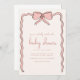 Celebrate the mum-to-be with this sweet and stylish baby shower invitation template featuring a hand-drawn pink ribbon and scalloped frame. The soft blush background and modern script font create a warm, welcoming design that’s perfect for any baby shower theme. Fully customisable with name, date, time, location, RSVP details, and registry information, this template is easy to personalise and ideal for both digital and printed invitations. A charming choice to set the tone for a special day.