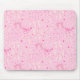 Coquette and whimsical mousepad featuring hand drawn illustration of pink bows and heart pattern.