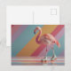 Whimsical Pink Flamingo on Roller Skates Postcard