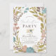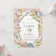 This whimsical graduation party invitation features a white background with wild flowers in pink, blue and yellow. The reverse side features a blush pink background with floral patterns. Personalise for your needs. You can find more matching products at my store.