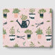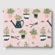 Potted plants, watering cans and cutting shears make up a cute gardening design.