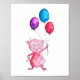 This is an original mixed media painting of a whimsical pink pig with three colourful balloons.