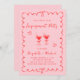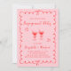 Trendy retro-inspired pink and red engagement party invitation featuring a wavy frame adorned with coquette bows, whimsical hand drawn illustrations of hearts and margarita cocktail glasses, and "Engagement Party" and the names of the bride and groom in a fun, playful script.