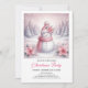 Whimsical Pink Snowman Editable Christmas Kids Invitation