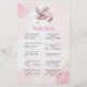 Challenge your guests with fun and surprising baby facts in this “Baby Trivia” game card, surrounded by whimsical pink clouds and a gentle stork design. The pastel colours and glittering stars add a sweet, feminine charm while keeping the game visually on theme. It’s an engaging way to educate and entertain at the same time.