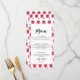This charming menu background features a playful strawberry pattern on a soft, light backdrop, creating a sweet and romantic wedding aesthetic. The hand-drawn strawberries and heart accents add a whimsical touch while keeping the layout clean and elegant for easy menu readability. Perfect for strawberry-themed weddings, pink romantic celebrations, and modern receptions that blend fun details with refined style.