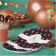 These charming paper plates feature a playful strawberry-themed design with hand-drawn strawberries and tiny hearts on a bold black background, accented by a soft white circle. Soft, romantic, and whimsical, they add a joyful touch to wedding table settings, bridal showers, and celebratory gatherings. Perfect for couples who love a modern romantic aesthetic with sweet, festive details inspired by love and summer charm.