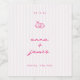 Whimsical Pink Illustrated Wedding, bottle labels. Features, light pink and white stripe pattern background & hand drawn wedding rings illustration. Fonts and element colours can be customised.