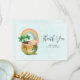 Thank you card with an adorable illustration featuring a smiling green and gold pot with a cute rainbow,